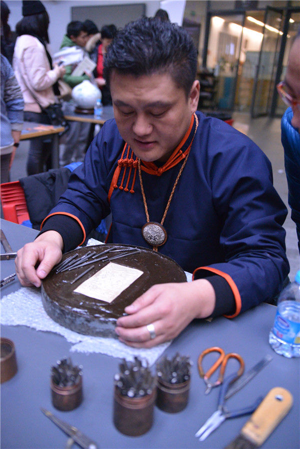 2019年,在自治区文化厅非遗处的大力支持和关怀下,项目保护单位多次委派项目传承人和毡绣艺人前往上海、呼市参加关于传统工艺振兴调研学习,并且按照自治区下达的非遗项目扶持资金有计划地进行培训。举办了两期“蒙古族金银铜器制作技艺培训班”,聘请自治区级非物质文化遗产金银铜器制作技艺传承人进行授课,参加培训人员30人。通过交流学习,技艺及设计理念得到极大提升。