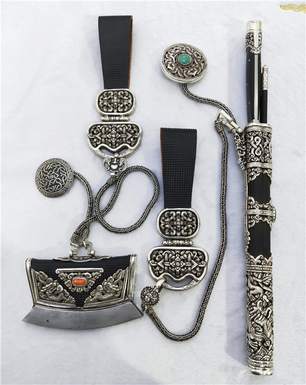 蒙古族金银铜器制作是蒙古族最具代表性的传统手工技艺之一,四子王旗蒙古族金银器制作技艺历史悠久,制品包括蒙古刀、银碗、鼻烟壶、头饰、小挂饰以及各种马具、鞍花等,图案多为自然纹样及蒙古族吉祥图案。手工制作金银器的工序繁杂,有平雕、浮雕、掏空、鎏金、景泰蓝、掐银丝花、铆焊、镶嵌、刺绣制作工艺,其实用性、观赏性以及礼仪性都达到非常完美的程度。目前我旗项目有自治区级蒙古族金银铜器制作技艺项目传承人斌巴、苏格尔2人。